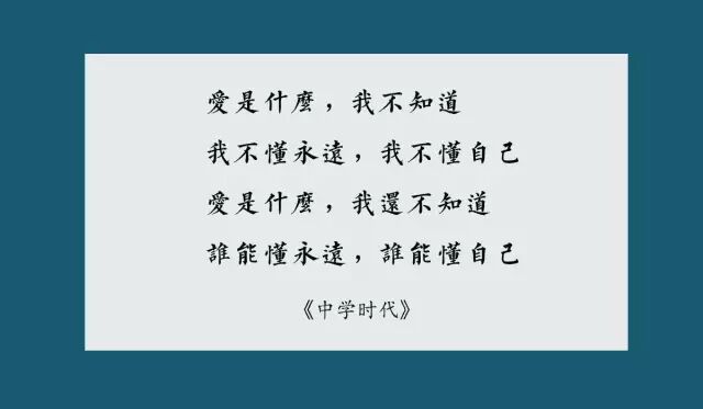 《中学时代》也就是那个年代的作品,里面没有一切复杂的情节,有的只是幼稚的脸庞,纯真的爱恋,和淡淡的忧伤,或许那时候不懂爱情,不懂永远,也不懂自己,但是却知道什么事唯一,虽然很想倾诉,然而又不敢说出口且怕不经意间伤害了谁,于是把一切小心思悄悄地都藏在了书包中的日记本里。