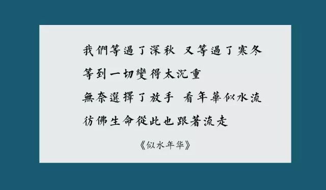 每个人都曾经历青春年华,写过一些书信,听过一些老歌,拍过一些相片,牵过某个人的手,许下过一些誓言,然而在岁月的变迁中,一切又怎能预言?回首之间,已是多年,人生中有些遗憾就这样永久留下了。总有些话语,是那时候不能理解。总有些故事,是那时候不能够改变。